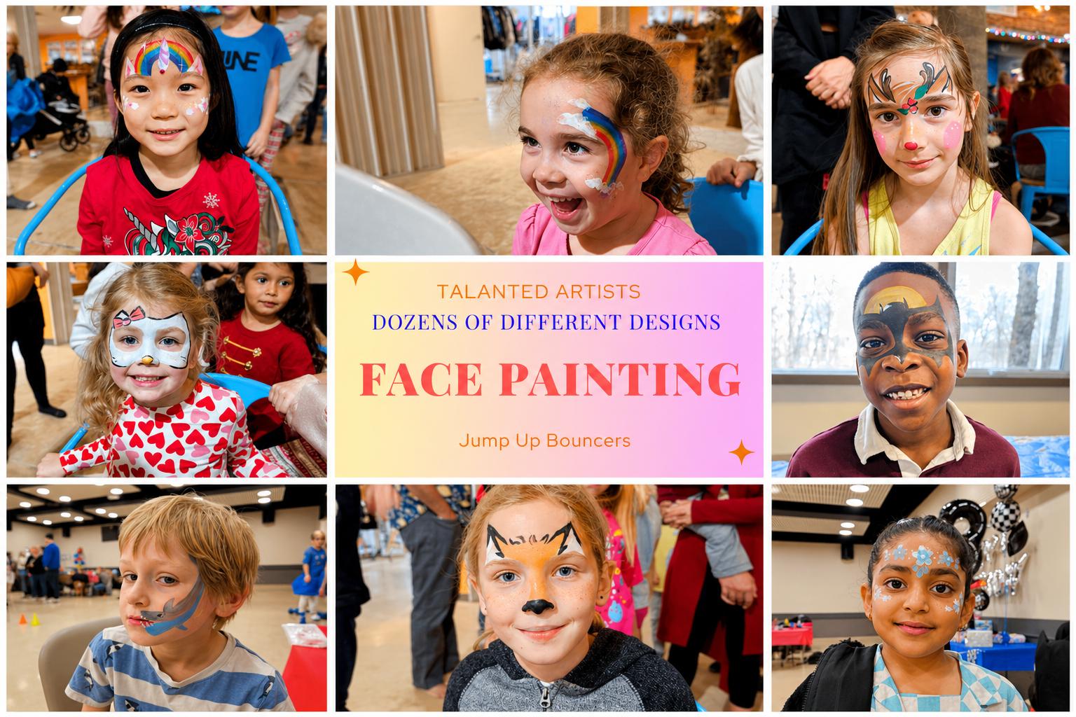 We use non-toxic face paints and offer many fun design options for kids and guests. Most designs take about 4–5 minutes, so one face painter can usually paint approximately 12–15 faces per hour. For larger events, multiple face painters can be booked to reduce lines and serve more guests.